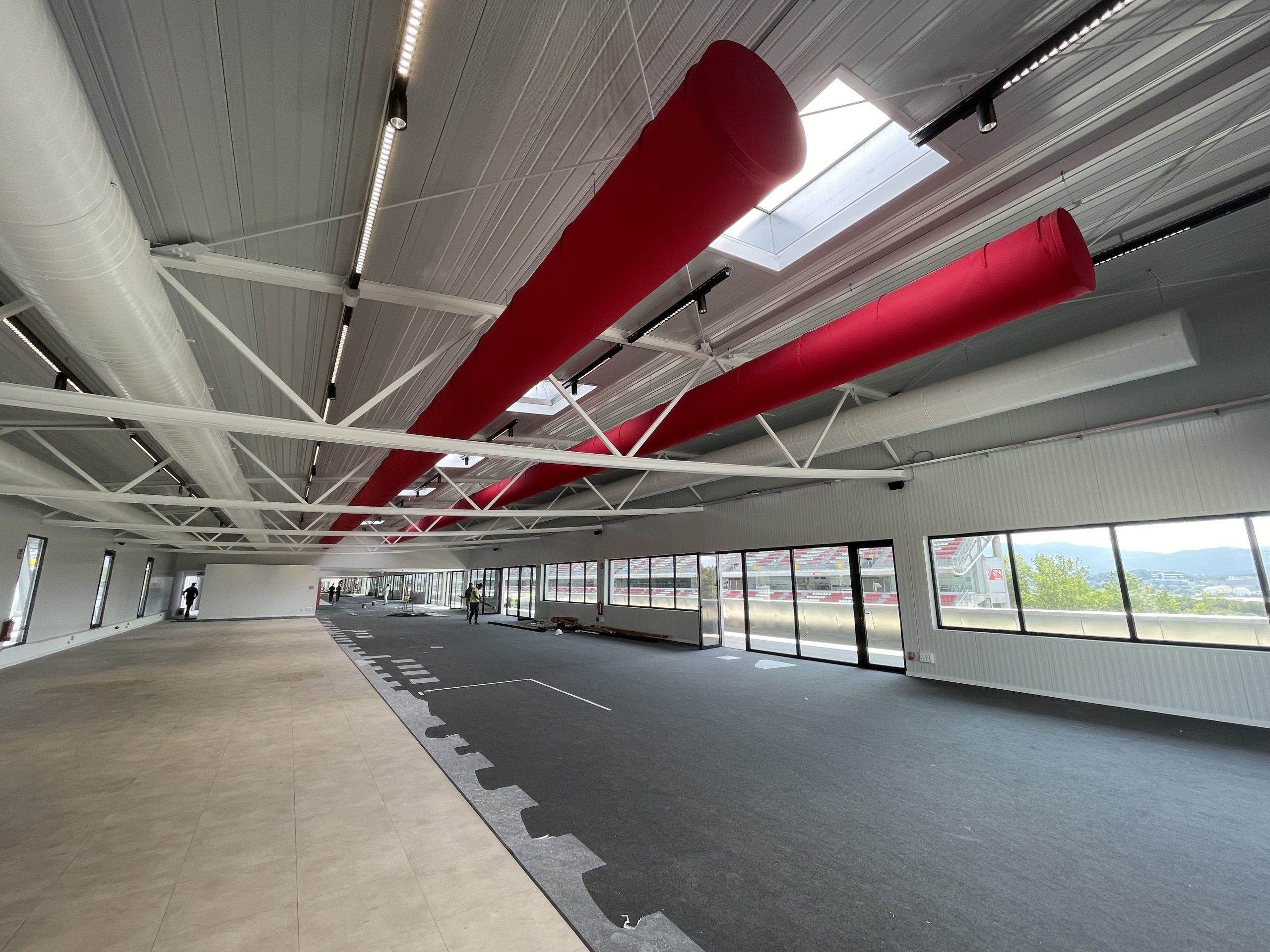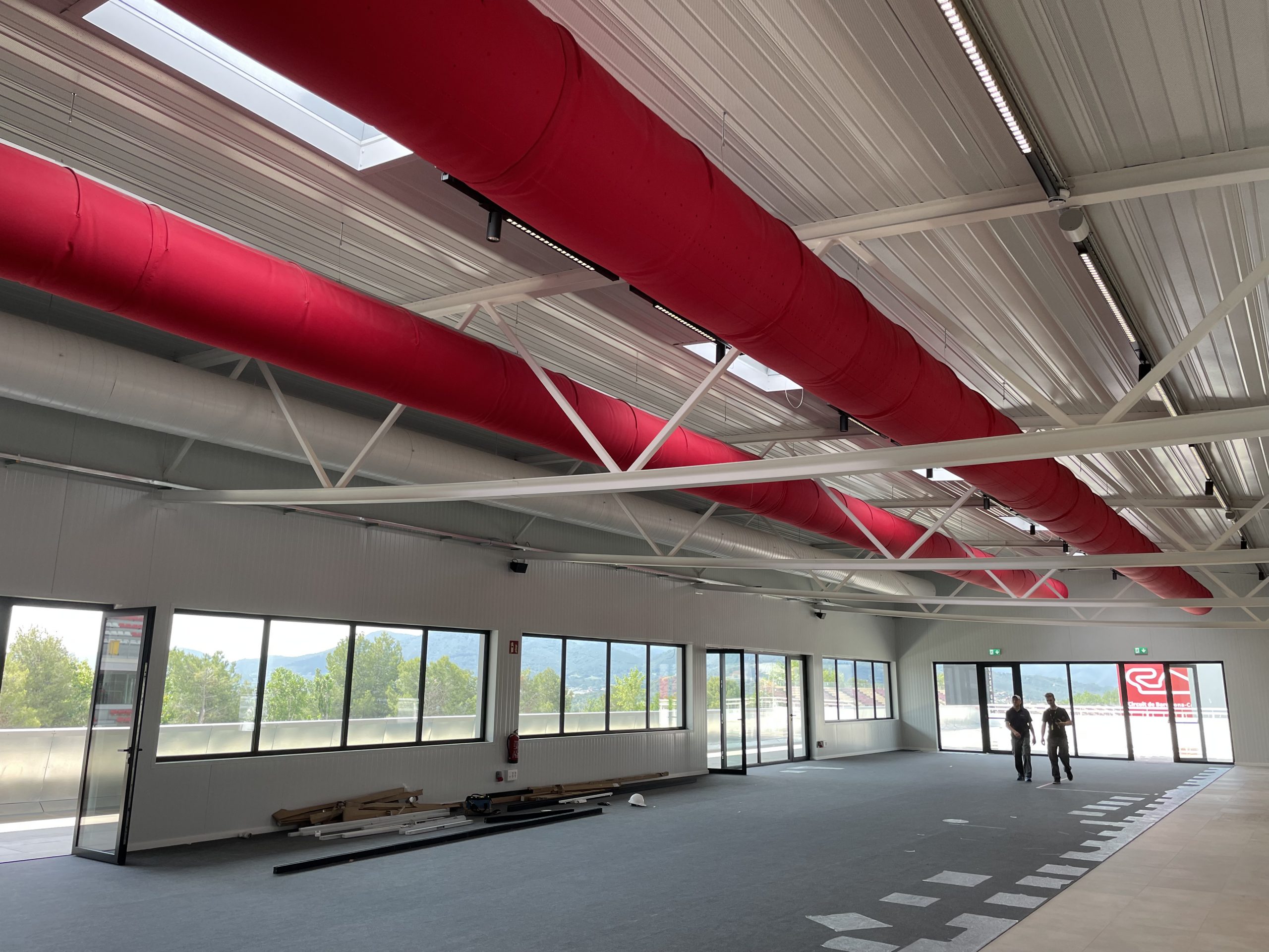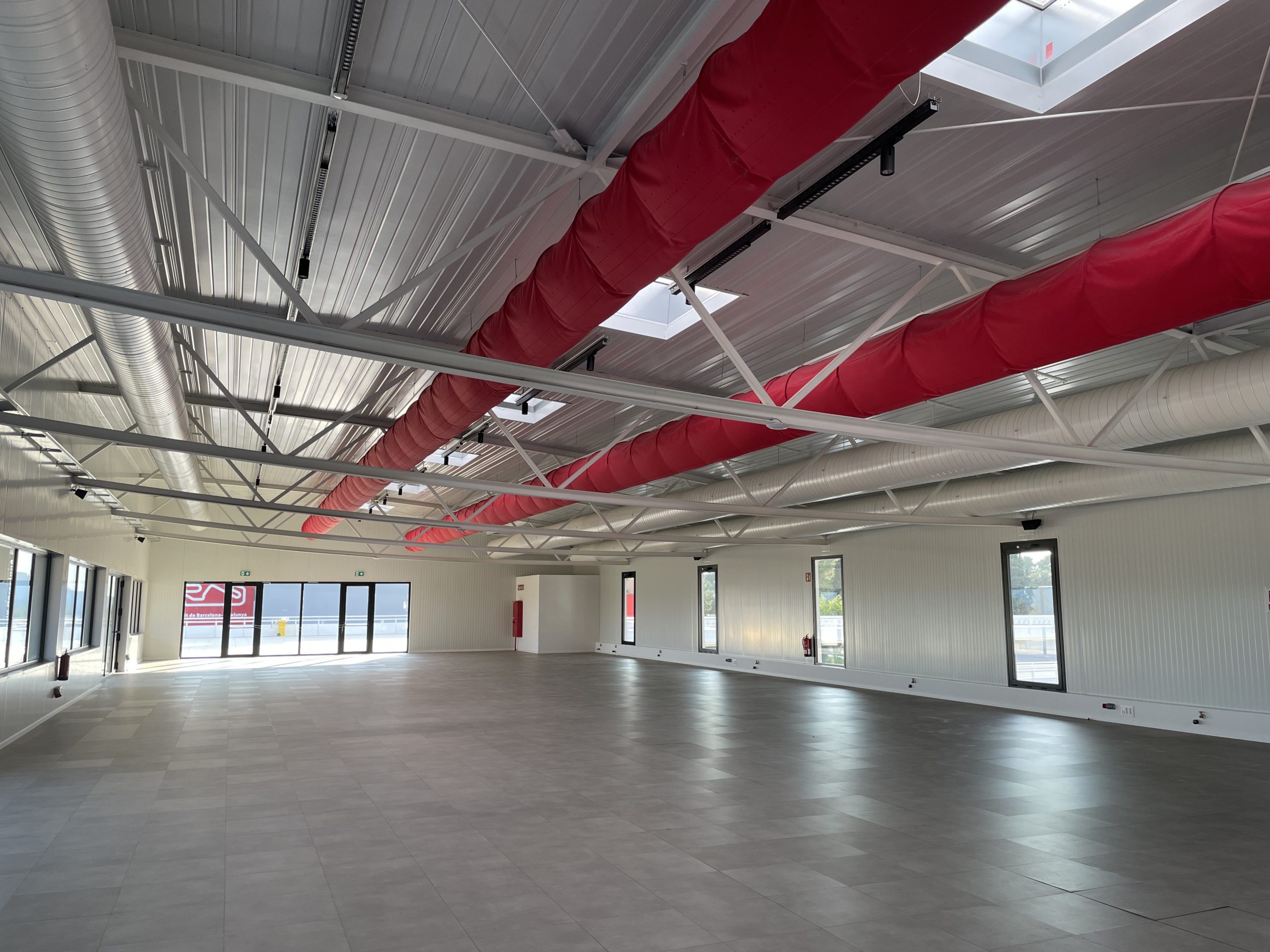 Red fabric ducts provide ideal climate in a new event space at the Circuito de Barcelona- Cataluna