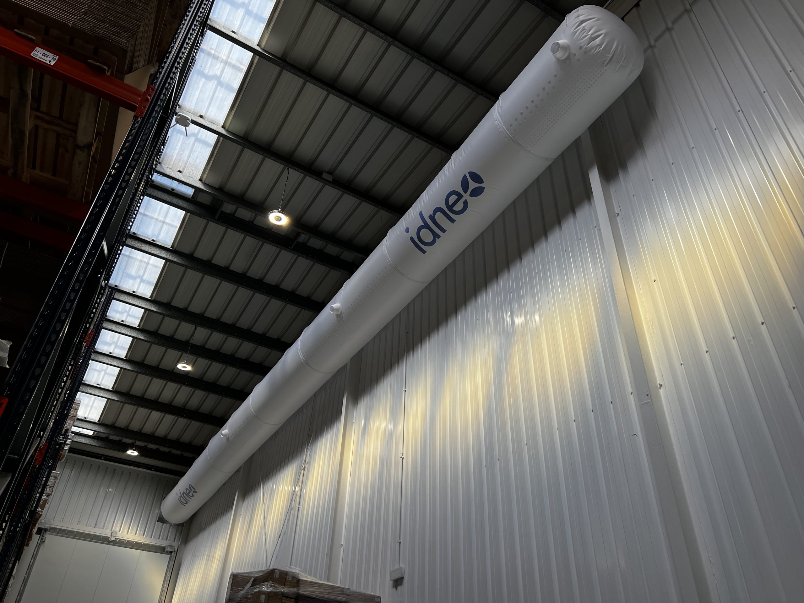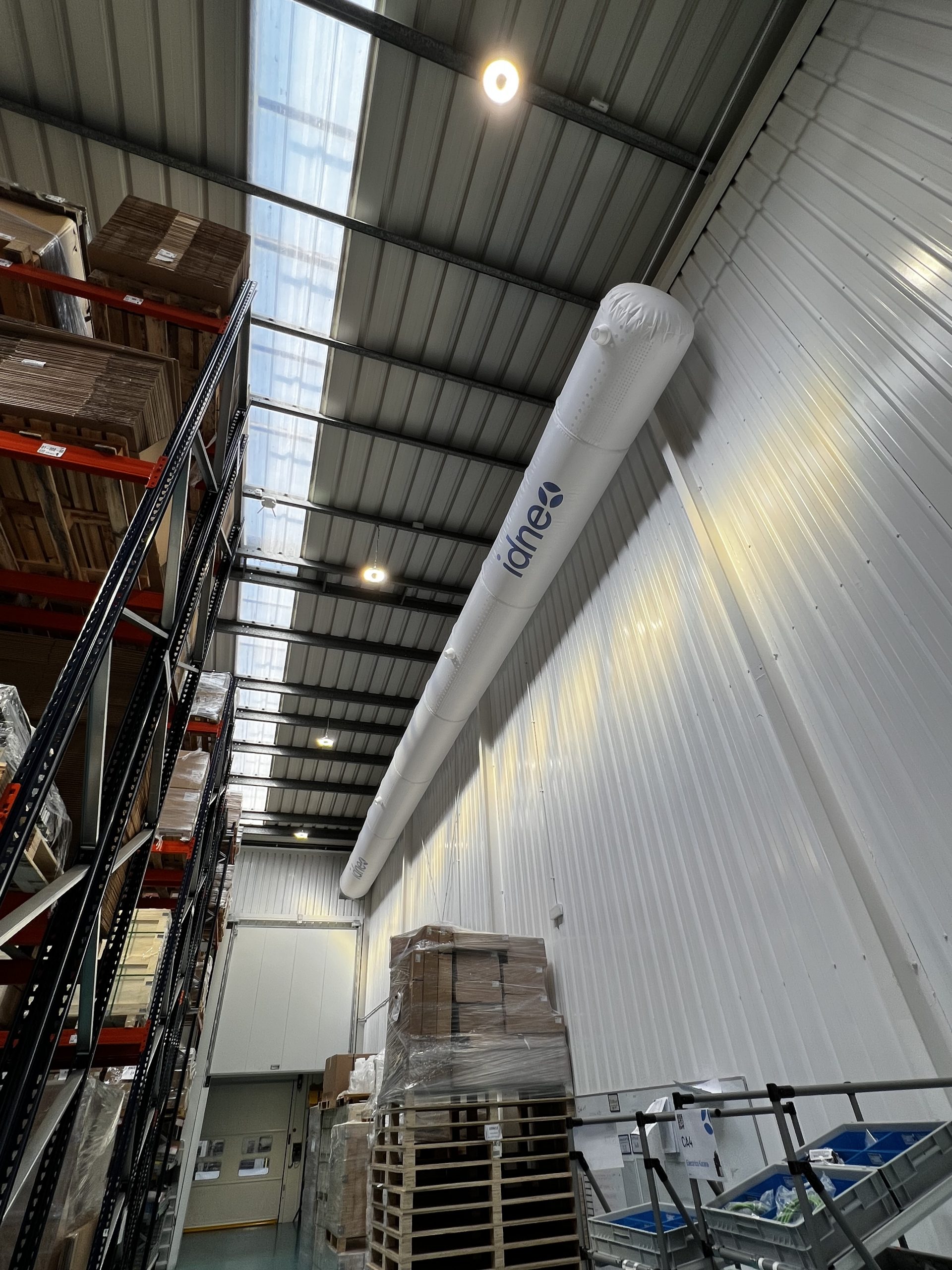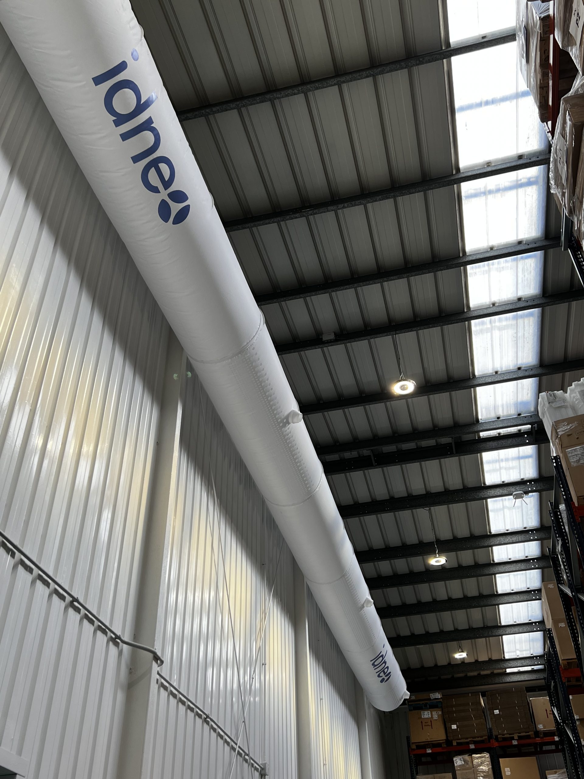 Instalación de conductos FabricAir en la nave logística de Idneo