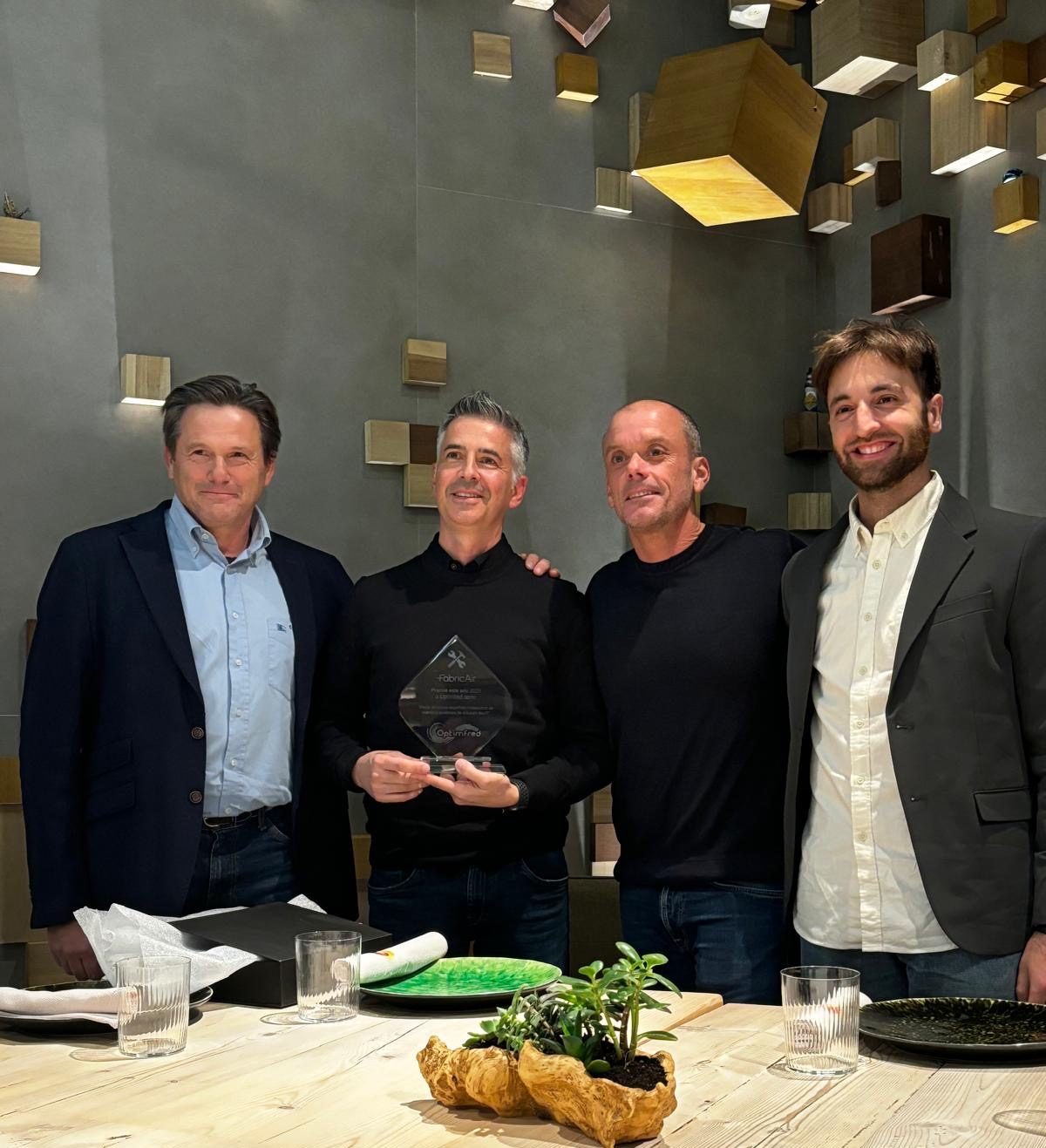 El pasado 19 de noviembre, durante la celebración de la feria C&R en Madrid, nuestro equipo de FabricAir tuvo el honor de reconocer a Optimfred como la mejor empresa instaladora de sistemas de difusión FabricAir 2025. La entrega del galardón se realizó en el marco de una cena especial en el restaurante Omeraki, donde el director comercial de FabricAir España, Carlos Alonso Ollacarizqueta, hizo entrega del premio a Carlos Espinar, Director General de Optimfred, quien expresó su profundo agradecimiento en nombre de toda la compañía.