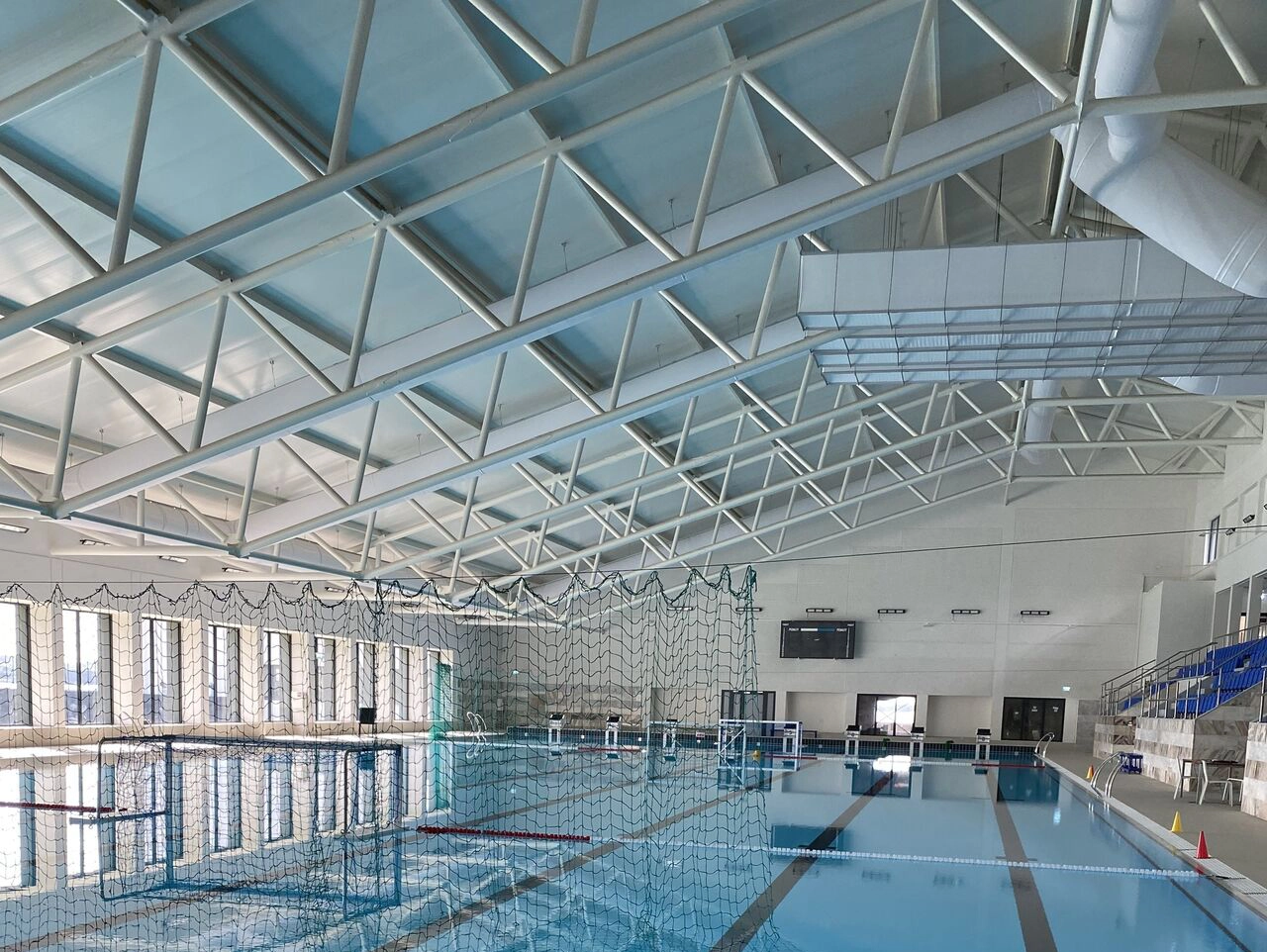 Ortakiams buvo parinktas antimikrobinis audinys, kuris neleidžia daugintis pelėsiui ir bakterijoms – tai itin svarbu baseinų aplinkoje. Montavimo elementai buvo pagaminti iš karštai cinkuoto plieno ir anoduoto aliuminio, siekiant užtikrinti atsparumą agresyviai aplinkai. Techniniai rodikliai: bendras paskirstyto oro kiekis – 63 580 m³/val.; sumontuota apie 286 m tekstilinių ortakių.