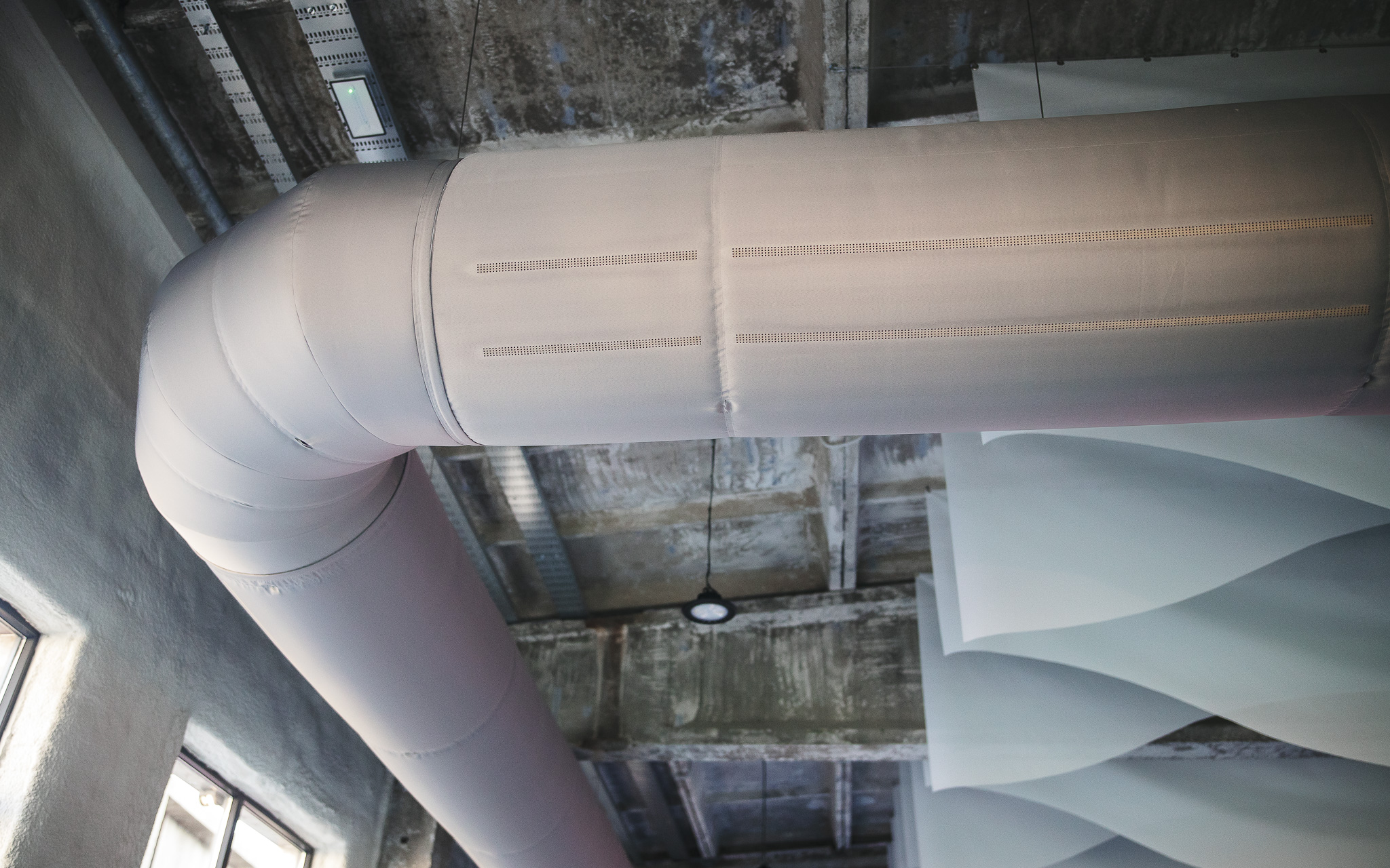 Rezultatai kalba patys už save – tekstiliniai ortakiai tolygiai paskirsto orą, pašalindami šalto oro sroves ir stagnuojančias zonas. Dėl orui pralaidžios medžiagos ir tikslaus srauto valdymo kondensatas nesusidaro, o sistema veikia tyliai ir efektyviai net intensyviai naudojamose erdvėse. Be to, tekstilinė sistema nereikalauja sudėtingos priežiūros ir yra atspari korozijai, kas yra itin svarbu tokiomis sąlygomis.