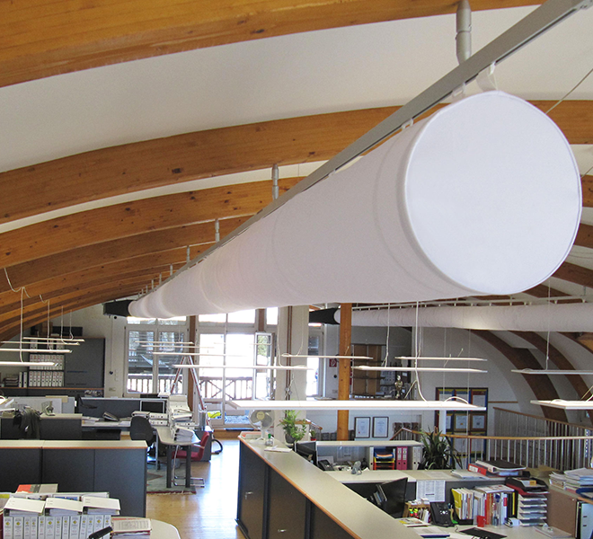 Biurai paprastai tampa tarsi antraisiais namais darbuotojams, kurie darbe praleidžia bent ketvirtadalį dienos. Todėl labai svarbu naudoti oro sklaidos sprendimą, kuris užtikrintų jų komfortą, sveikatą ir efektyvumą. Šias savybes tekstiliniai sprendimai gali užtikrinti dideliuose atviruose arba uždaruose, žemomis lubomis įrengtuose biuruose.
