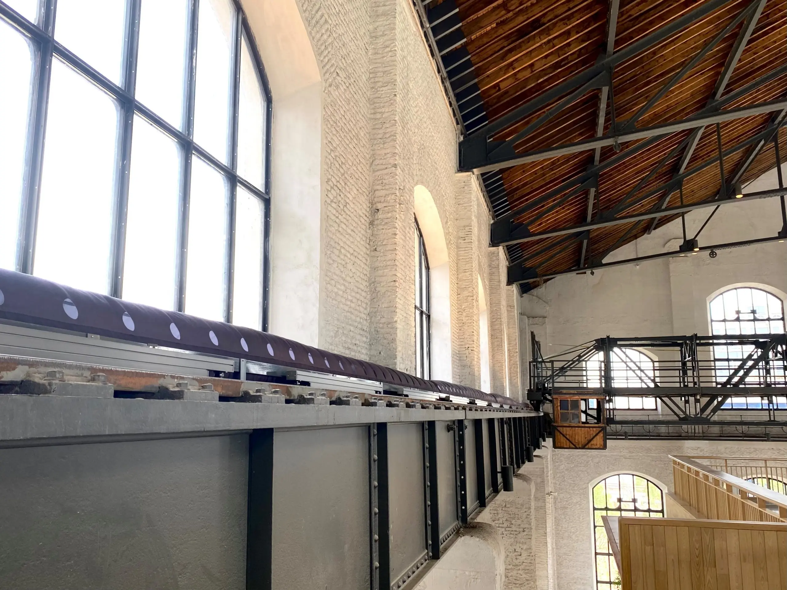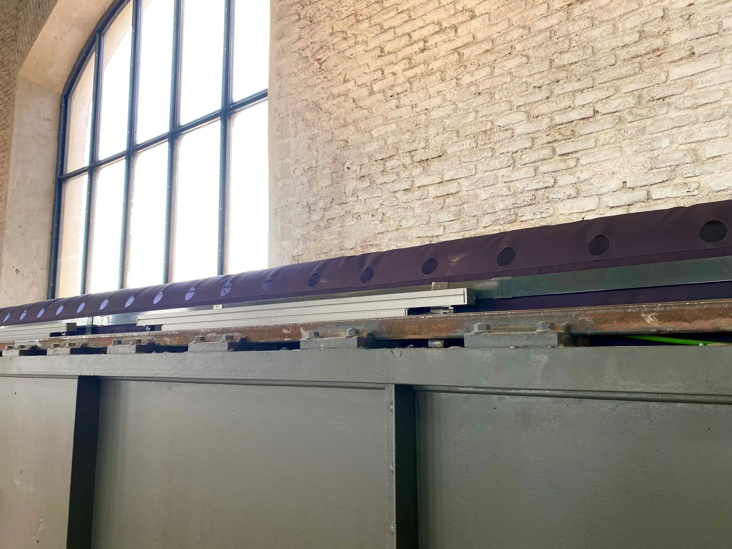En total se instalaron 65 metros de ductos textiles FabricAir en color gris oscuro generando una difusión de aire homogénea, agradable, sin corrientes de aire y totalmente mimetizada con el espacio; creando no sólo un ambiente de confort óptimo sino también aportando un añadido estético al edificio.