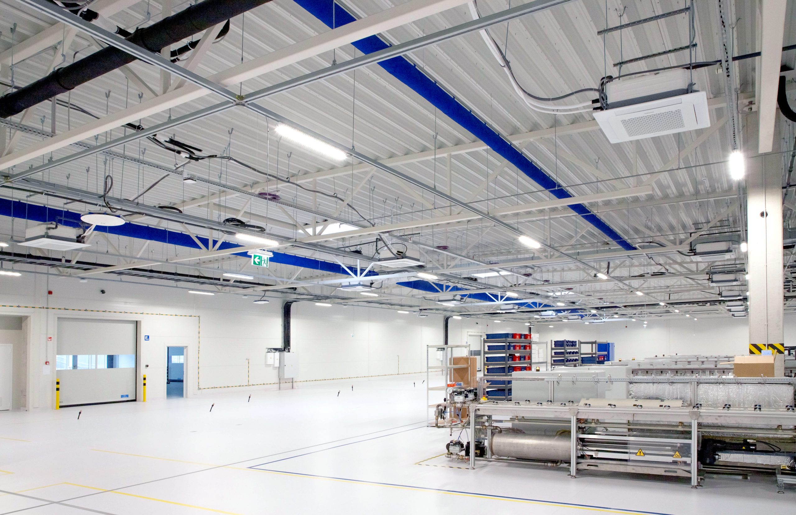 Axioma Metering, a leading developer and manufacturer of smart heat and water metering devices, decided to install an innovative fabric duct system in their new production facility in Kaunas, Lithuania. The company selected FabricAir for the factory’s HVAC system to enhance employee comfort and ensure optimal conditions for sensitive machinery and materials.