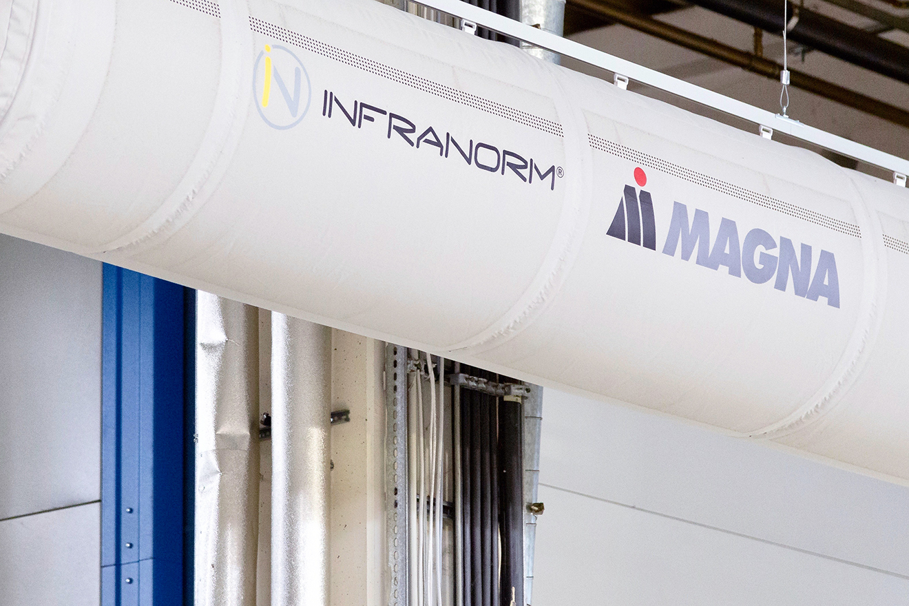 Logótipos e letreiros nas condutas podem ser utilizados para reforçar a identidade da tua empresa ou transmitir mensagens específicas. São aplicados através de transferência térmica. A posição da impressão é determinada pela localização da conduta na sala e pela posição habitual do observador. Por exemplo, em instalações desportivas, a impressão é inclinada para baixo para parecer natural aos espectadores.