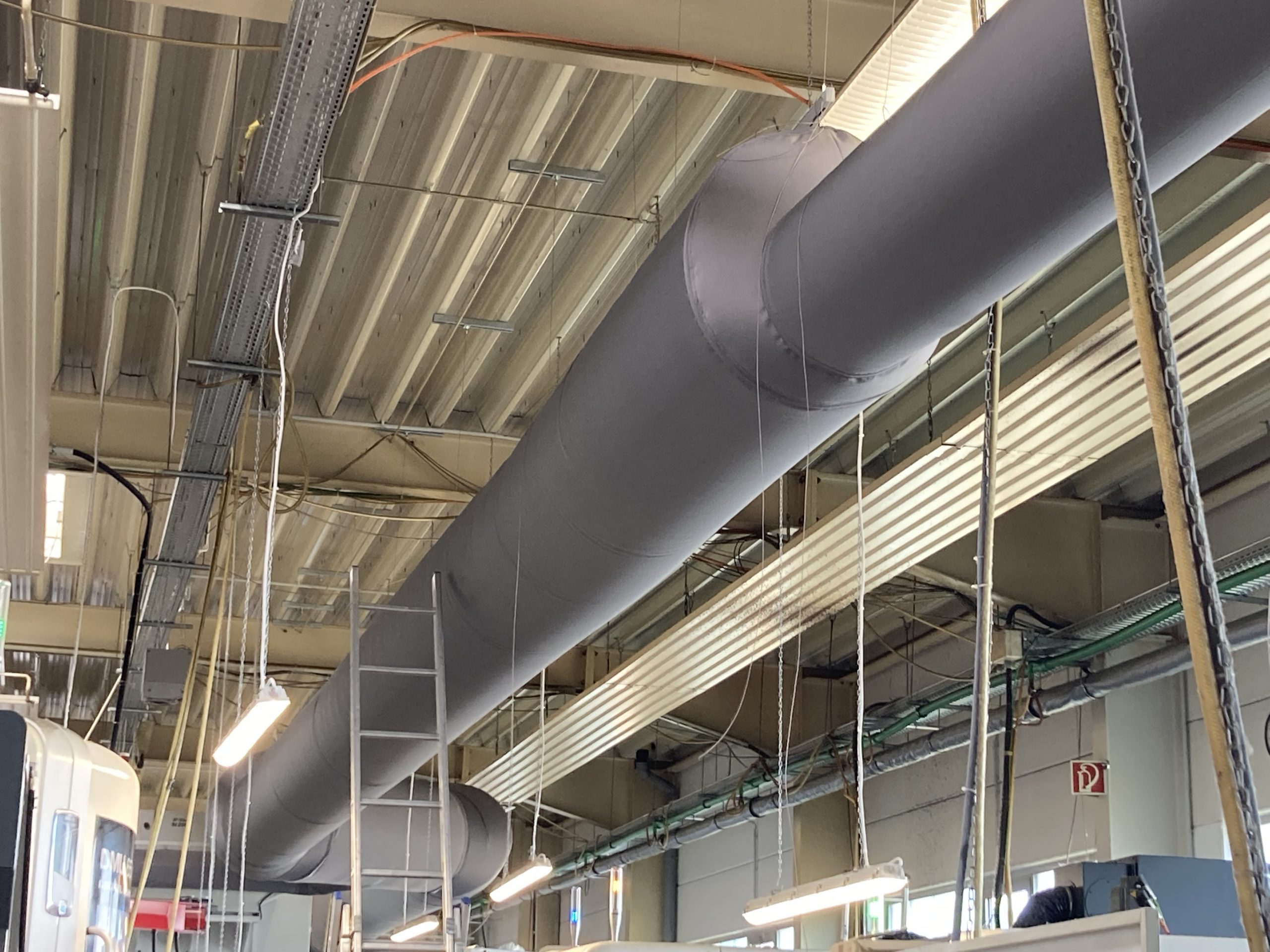 The system has been in operation since July 2022, and the installation was carried out by the Sonneberg-based company N.H. Industrietechnik. Since then, the fresh air reaches even angled work areas and is not impaired or diverted by machine exhaust air. The installers from N.H. Industrietechnik were enthusiastic about the tool-free suspension system, as minor corrections can be made with simple hand movements despite the complex routing. The customer also benefits from the versatile Type 08 suspension system, as quick disassembly and reassembly is possible during future maintenance and cleaning. The required stabilization of the duct system for the exhaust air is provided by circumferential aluminum frames, that prevent the ducts from contracting. The Kirsch company is very satisfied with the result and would like to add a second set of the system, that could be used while the other one is being delivered for cleaning. An important factor is that the system is easy to wash, as the metalworking industry often works with oils and lubricants.