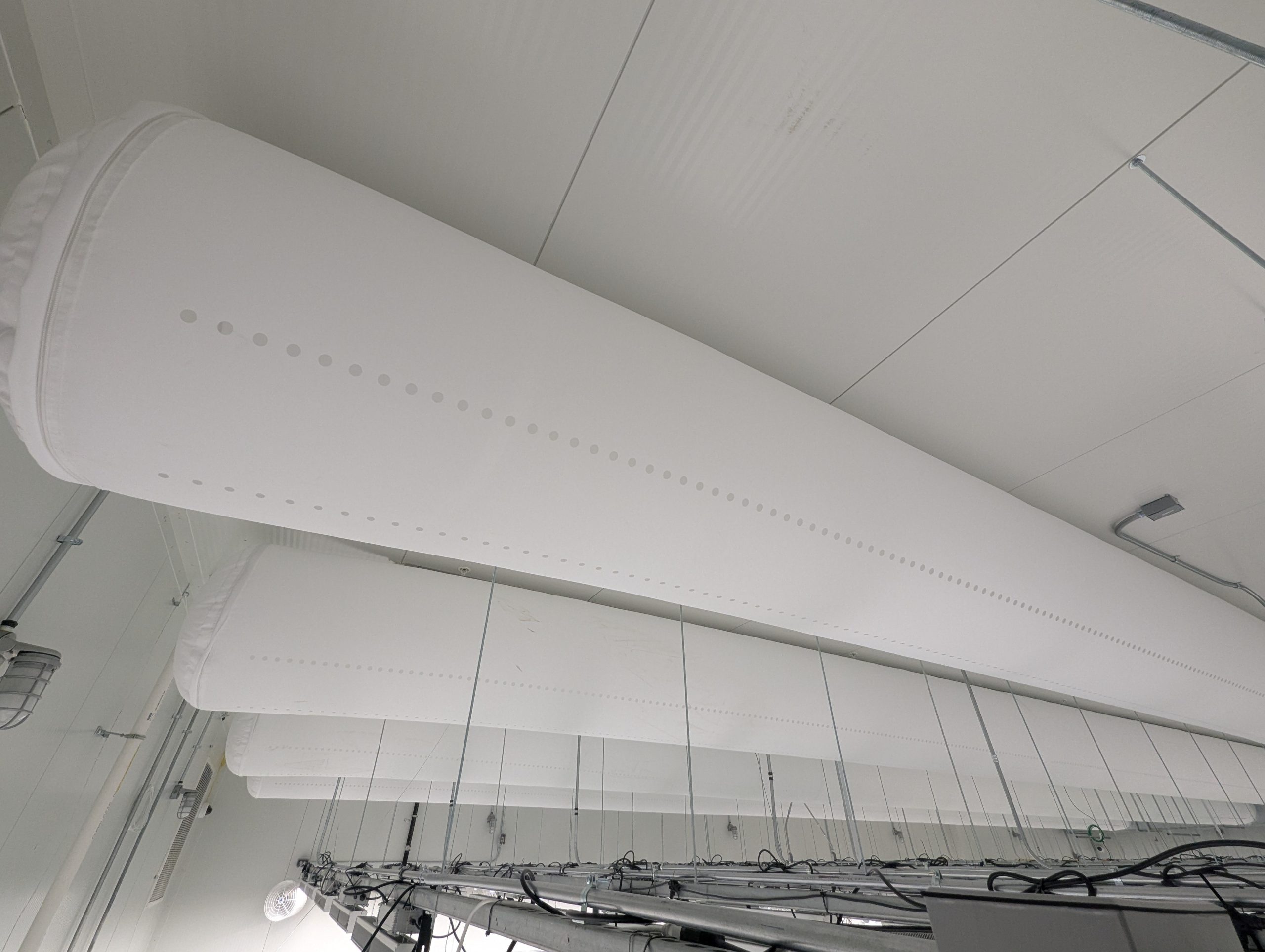 FabricAir began working with Native Sun Cannabis in 2023 on a comprehensive redesign of the air distribution in the grow rooms. FabricAir engineers worked alongside Director of Cultivation Cody Gagliardi to create a repeatable approach for all flower rooms to eliminate microclimates and microbial risks in the spaces while making room for lighting upgrades, better suited for single tier grow rooms.