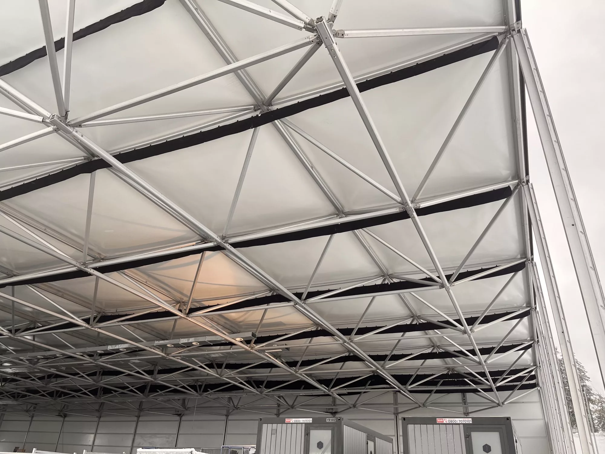 The fabric ducts installed in the VIP tent were made of Combi 30 fabric and were equipped with SonicFlow flow models. This system was designed to ensure that the airflow is distributed evenly throughout the tent, providing a comfortable environment, and ensuring a maximum IAQ for guests. In addition, it contributes to the structural integrity of the tent as the hot air will blow to the ceiling, melting the snow and preventing its heavy load.